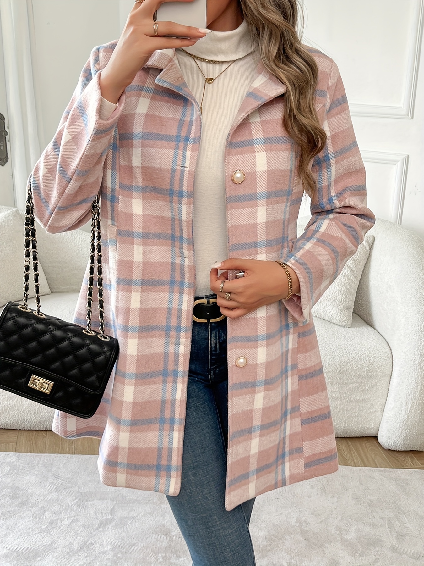 Single-Breasted Label Neck Blazer, Elegant Long Sleeve Blazer For Office & Work, Women’s Clothing