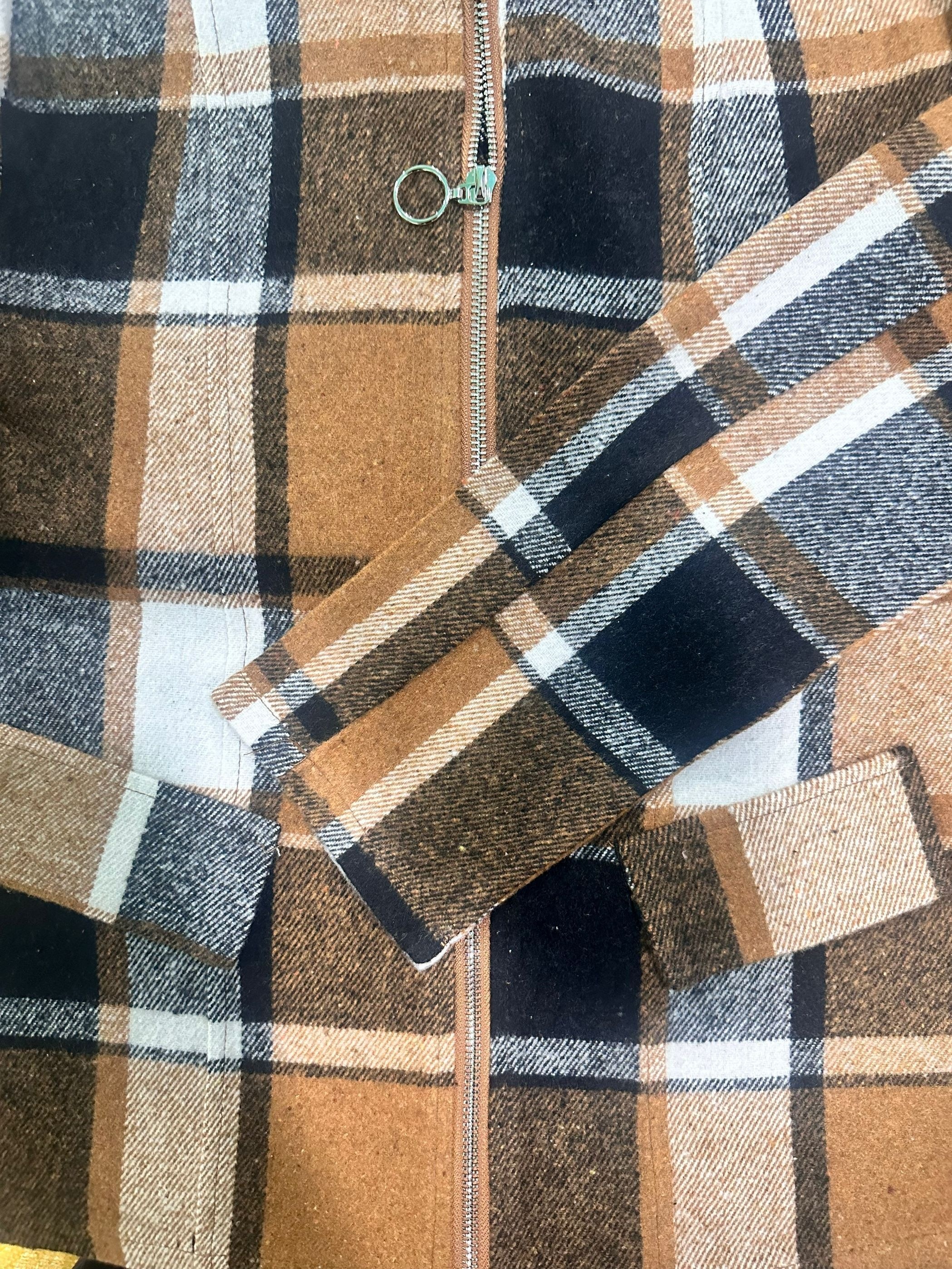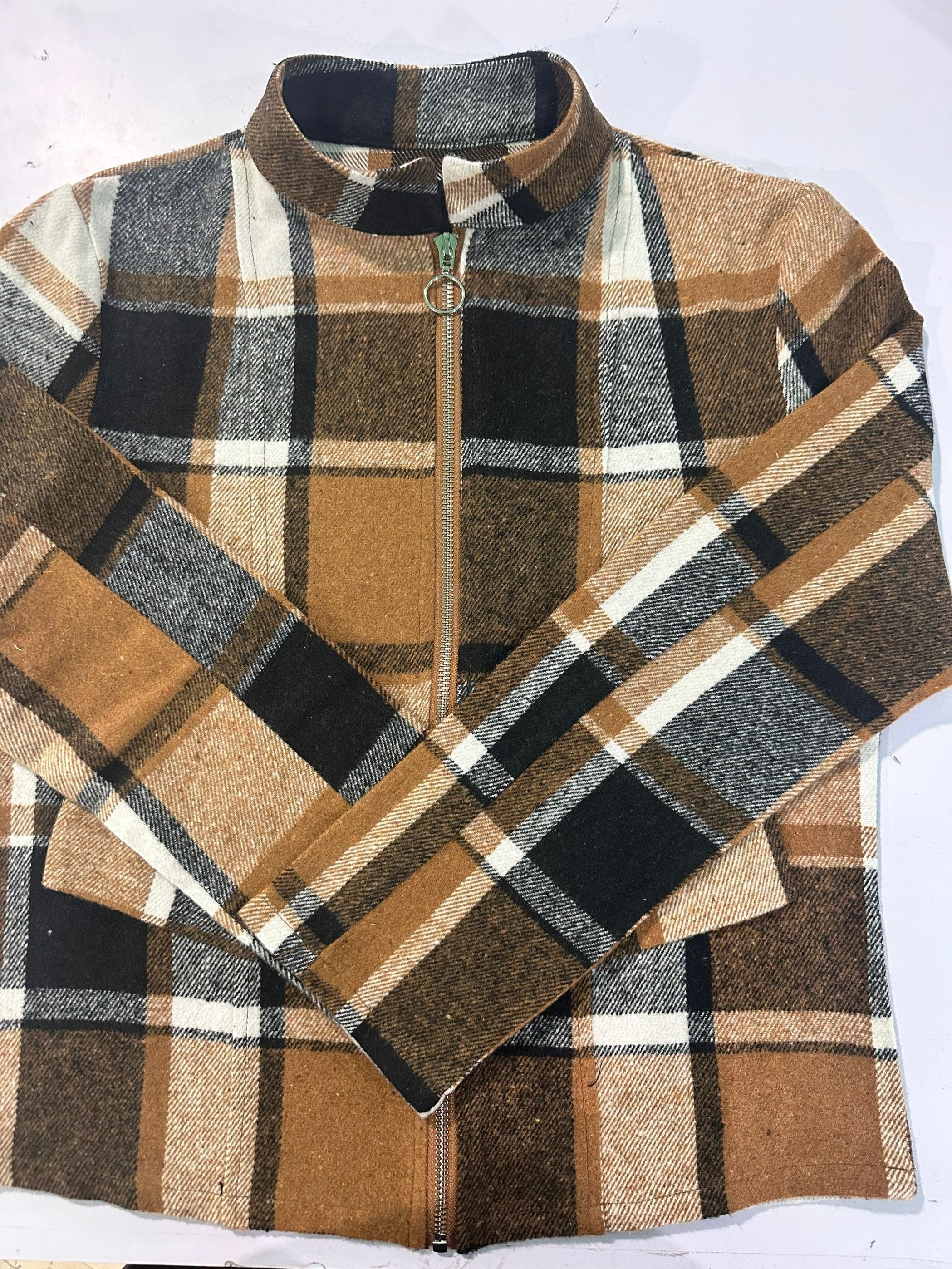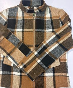Chic Plaid Slim-Fit Jacket for Women – Casual Stand Collar, Polyester, Perfect for Springu002FFall